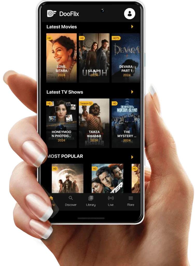 DooFlix App APK Watch and Download movies, TV series, and live TV channels online and web series in one simple, fast entertainment app.
